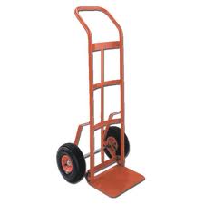 Aluminum Hand Truck: Easy to handle, multi-purpose, light weight, maneuverable, ideal for office and retail settings; heavy duty 7 ½” x 14” nose plate; 49” tall, 18” wide; available with 10” solid rubber wheels; or semi-pneumatic wheels (rupture-proof and shock absorbing); 600 lb. capacity; assembly required.